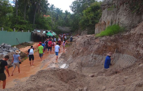 H, a man in Mui Ne Ward of Phan Thiet City, said he and some neighbors visited titanium mines every night and took photos of illegal activities with their smartphones to provide to agencies.