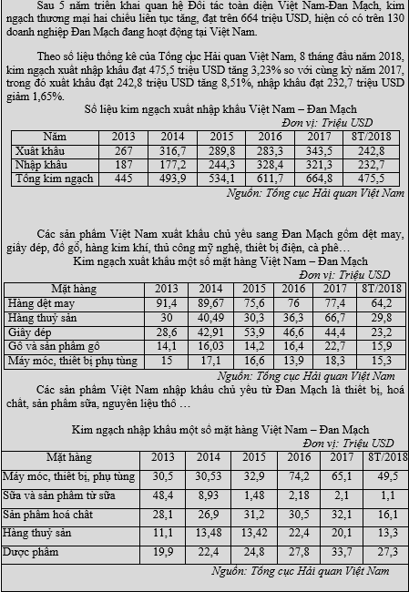 On the same day, the Prime Minister Nguyen Xuan Phuc was accompanied by Minister of Industry and Trade Tran Tuan Anh to attend the Vietnam-Denmark Business Forum with the participation of leading Danish companies. At the forum, the Minister answered many questions, especially in the field of energy including the policy of clean energy development and green development guarantee of Vietnam, the national wind power plan and incentives for investors in this area.