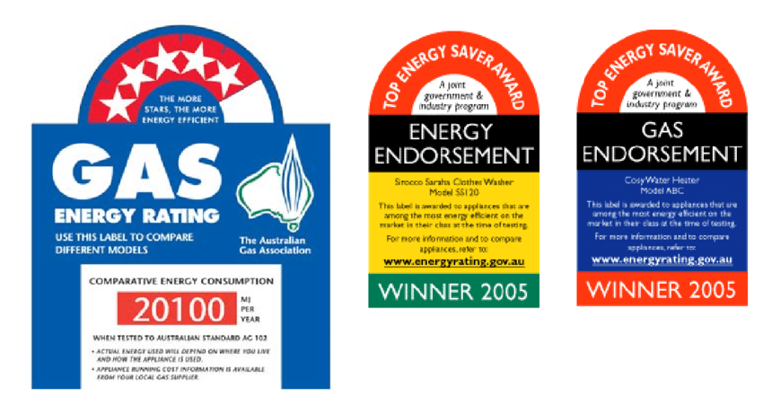 Program Information: Being voluntary, this label is administered by the Australian Gas Association. In order for appliances to be approved for sale technical information must be provided to the AGA. This information allows an assessment of energy efficiency that determines the appliances star rating. It is then up to the manufacturer and/or retailer to decide whether to display the rating at the point of sale. Although the program began in the early 1980’s, the current label design was adopted 1988. There have been discussions concerning moving the program so it is covered under the same administration as the energy label, as well as introducing it into the New Zealand marketplace.