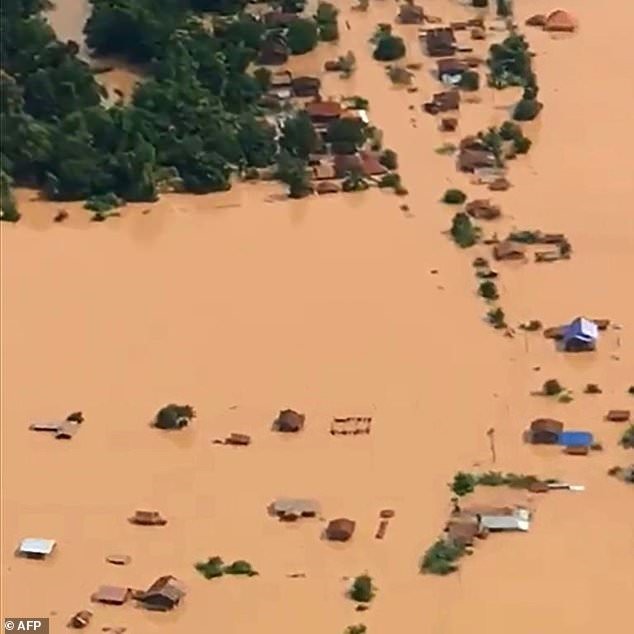 A village submerged in water in the wake of the Xepian-Xe Nam Noy hydropower dam collapse